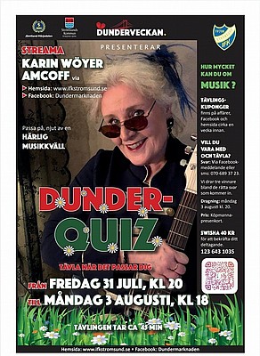 Dunderkommittén dundrar även vidare med andra event. Närmast med digital Dunderquiz den 30 april-3 maj 2021 med musikern Ronnie Åström.