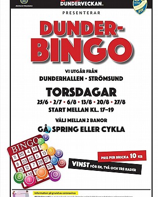 Vi har hoppats och önskat att kunna genomföra Dunderveckan i sommar, men tyvärr blir vi tvingade att ställa in. Som ni förstår så beror det på covid-19. Detta har varit ett väldigt tungt beslut för oss i kommittén, eftersom vi alla har varit väldigt taggade att få genomföra sommarens största händelse i Strömsund.