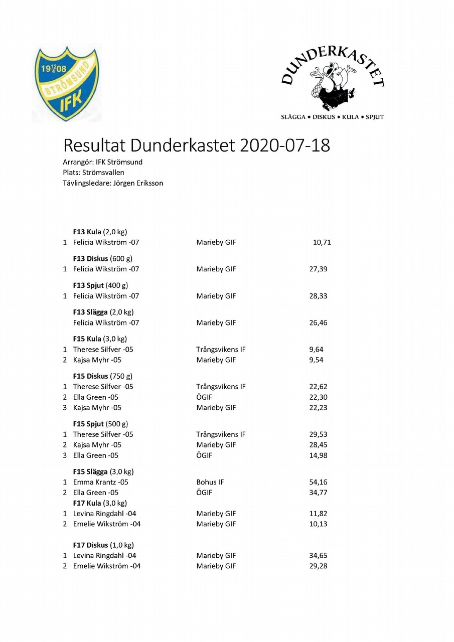 Resultat från Onsdagstävling på Strömsvallen i Strömsund 3/7
