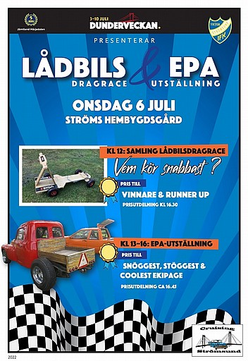 Se hit alla unga och alla andra som har barnasinnet kvar! I samarbete med Strömsund crusing har vi nöjet att presentera Lådbilsdragsrace! Onsdagen den 6 juli med start kl 12, har ni chansen att tävla med lådbilar. Strömsund crusing har 6 lådbilar för utlåning, men ni får tävla med egen lådbil. Besiktning av lådbil kommer att göras innan start.